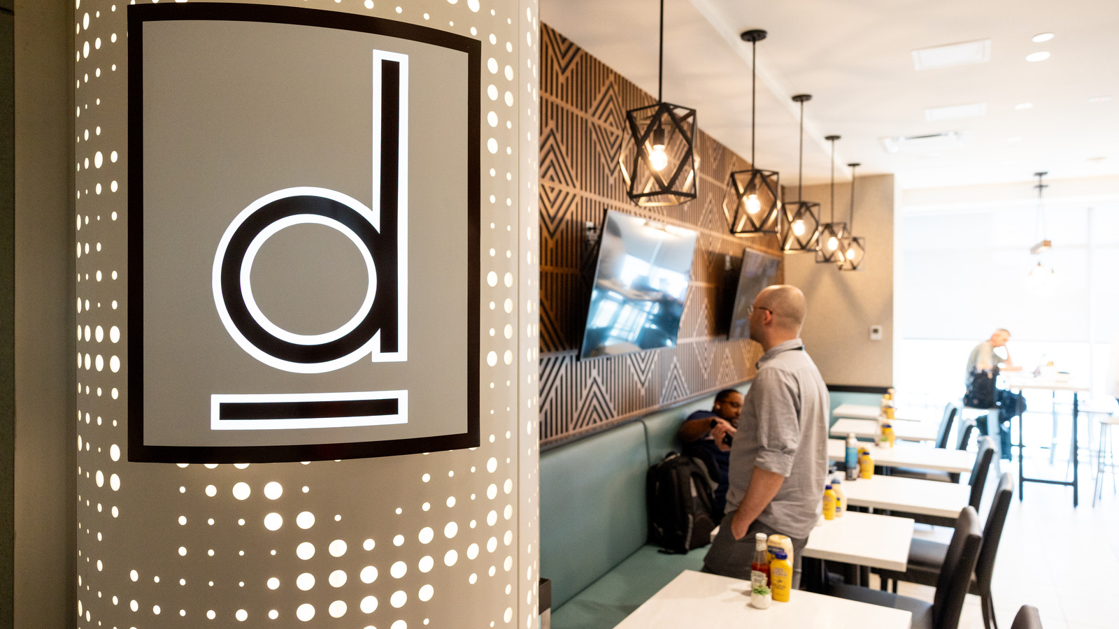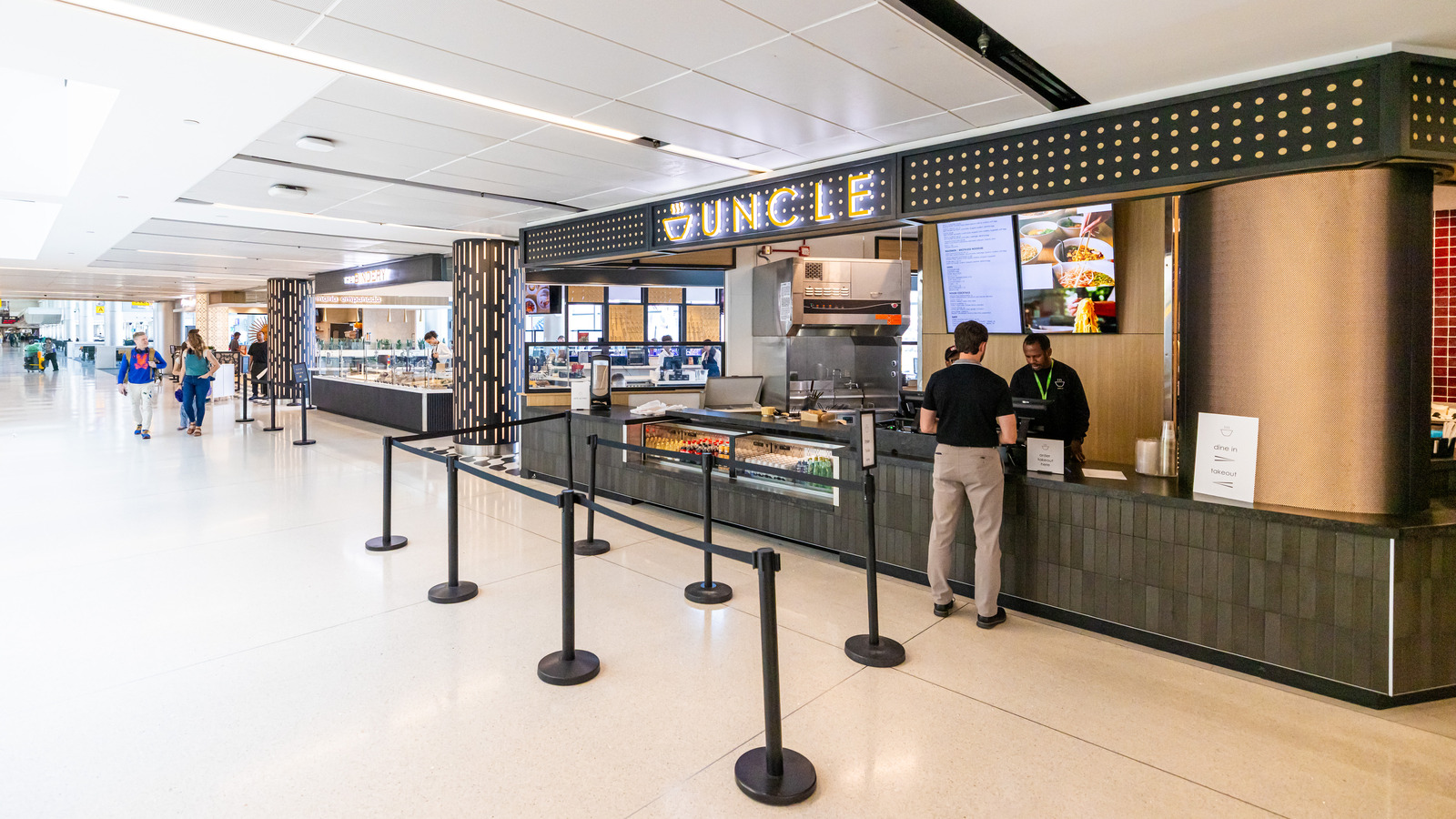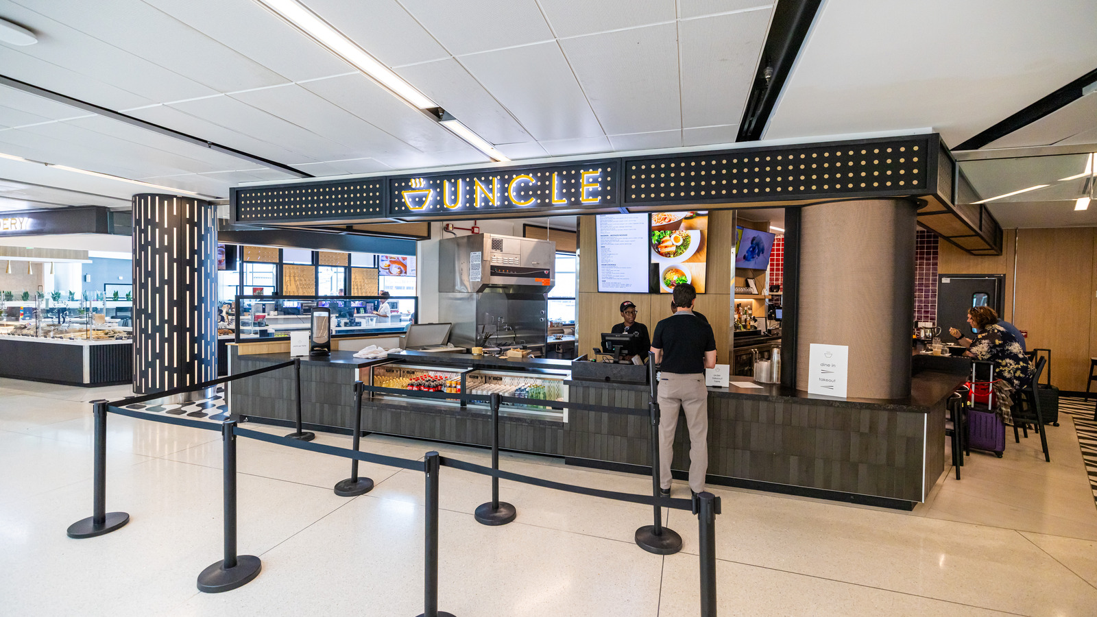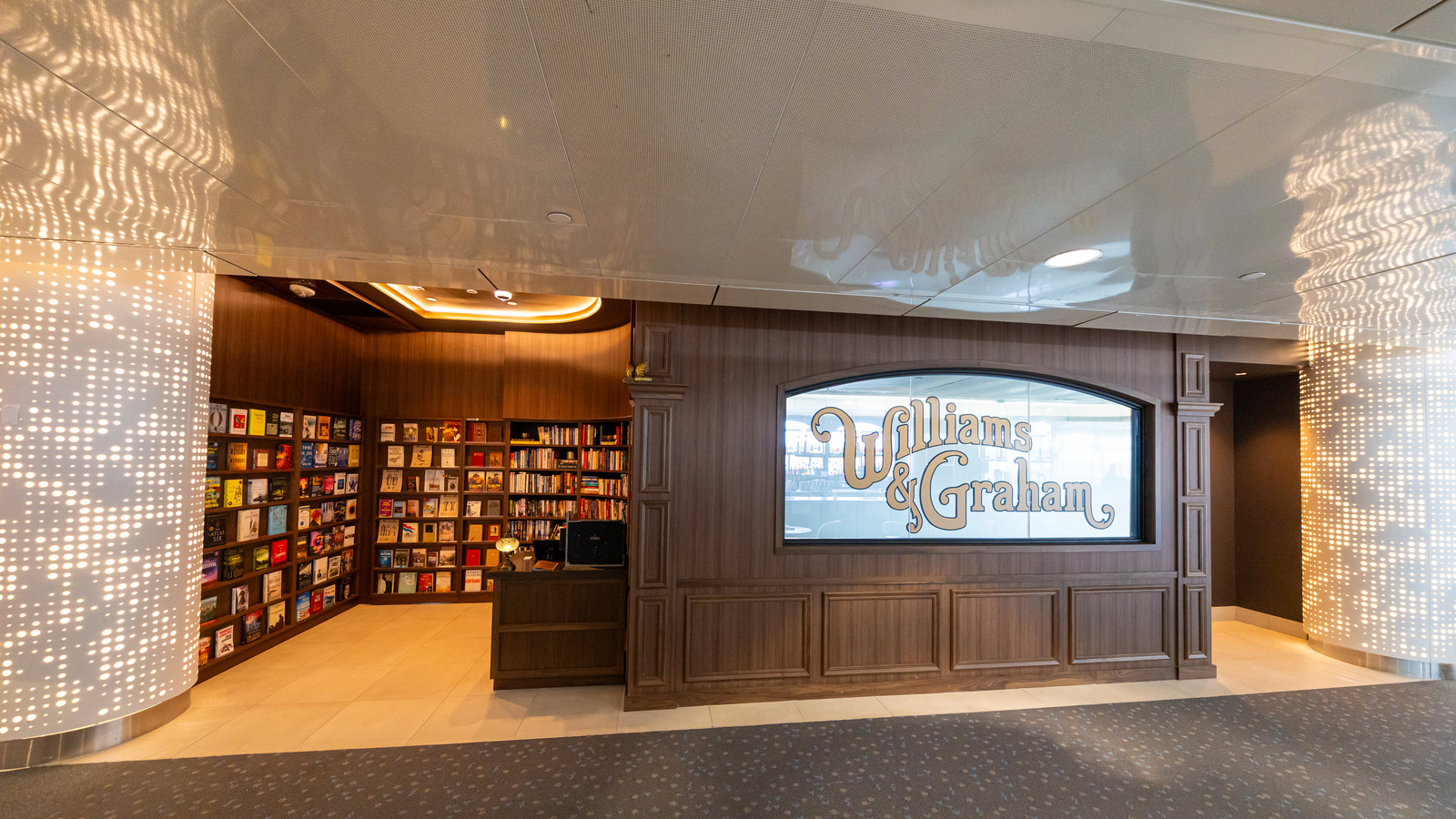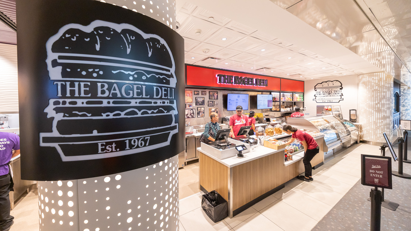 At Denver International Airport’s Marketplace Concourse A near gate A38, five MOZCC100 Series round column covers were installed at the entrances near Tocabe, The Bagel Deli, D Bar, and the Williams & Graham restaurants. Each column cover measures 36 inches in diameter and 8 feet 6 inches tall, fabricated in three sections of .125″ aluminum with vertical butt joints and a 6-inch recessed base in #4 stainless steel. The design features Moz’s Twinkle laser-cut pattern and a Snow powder-coated interior finish, offering a clean, modern look that enhances the terminal’s architecture.