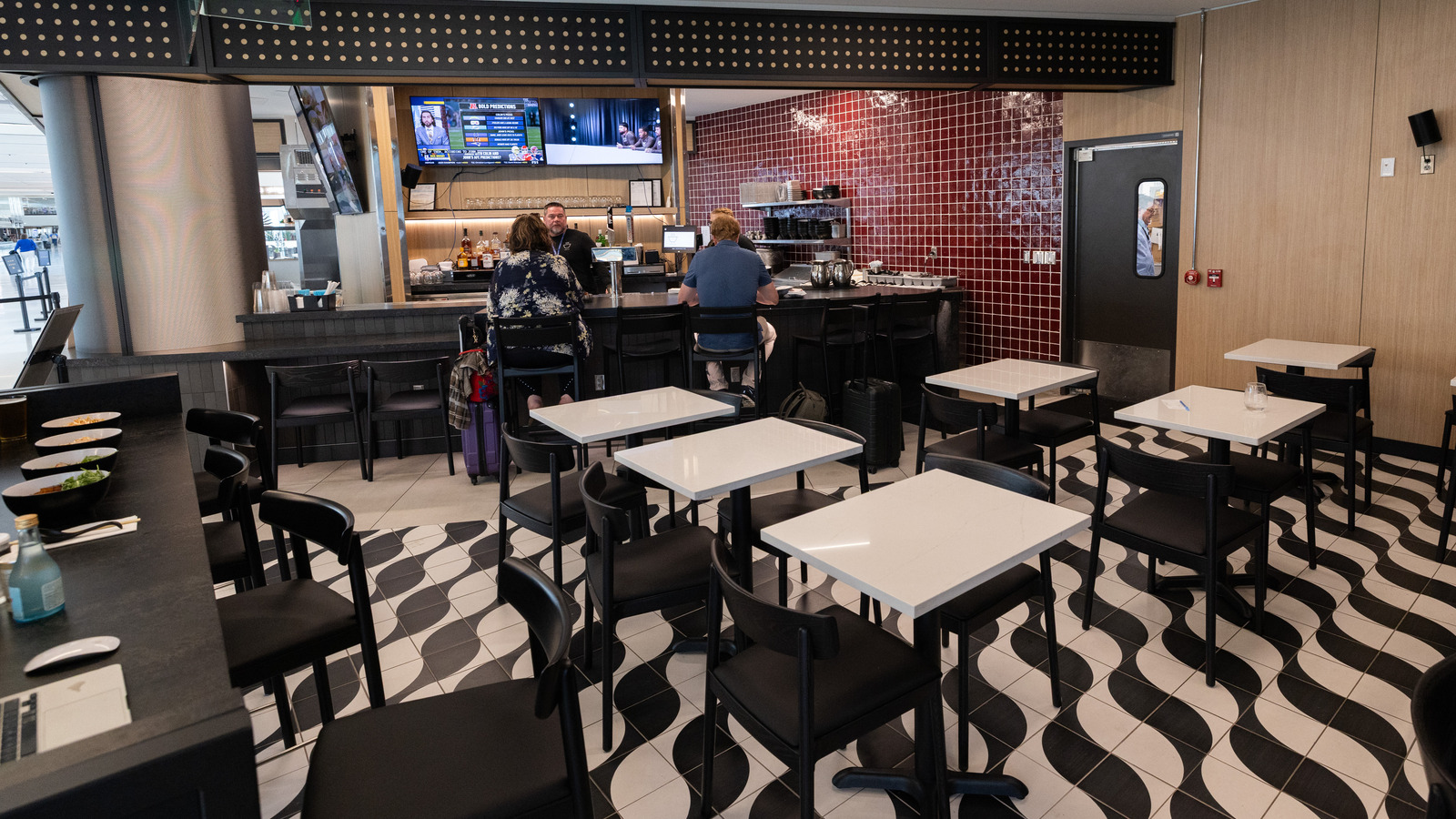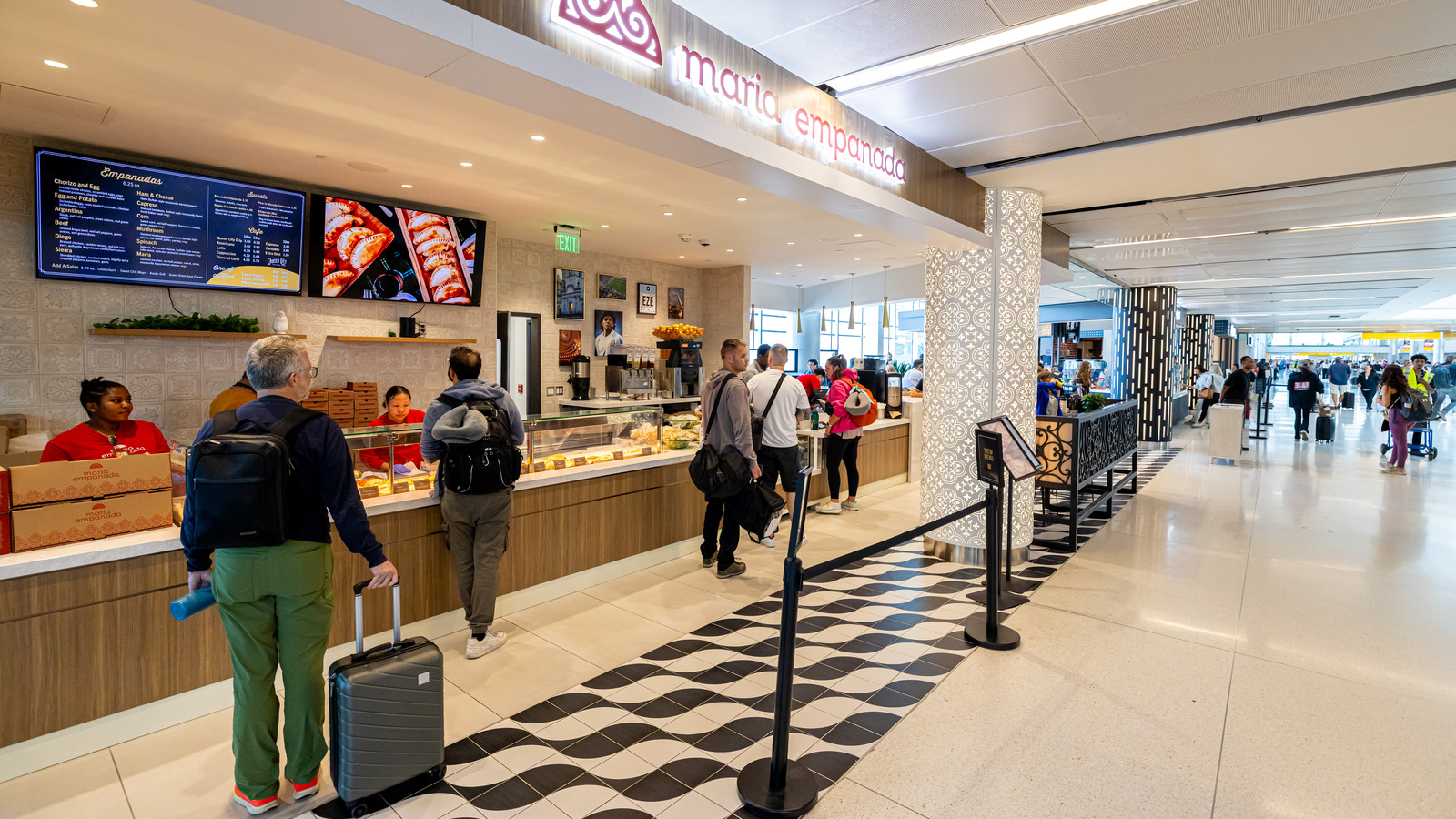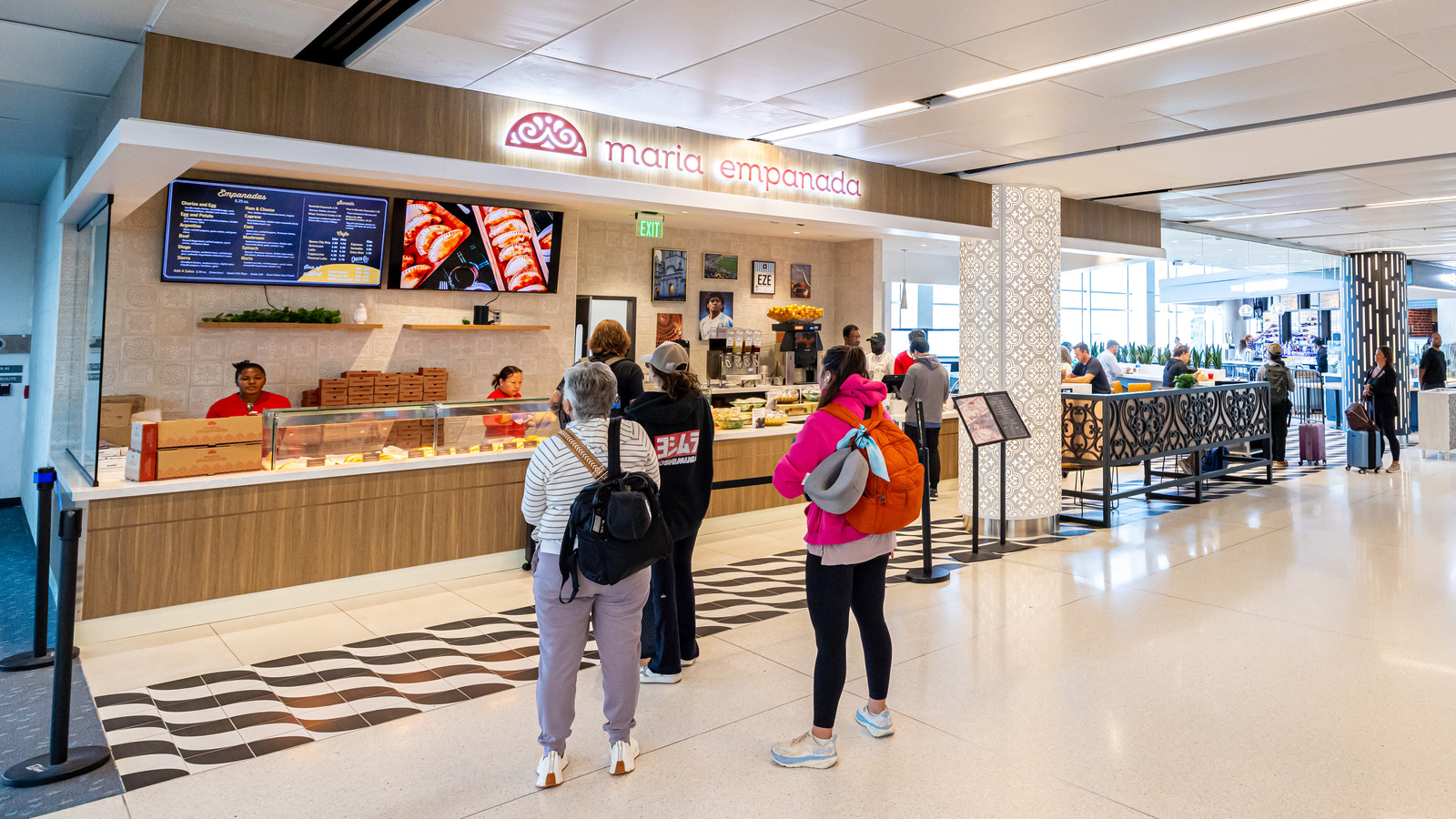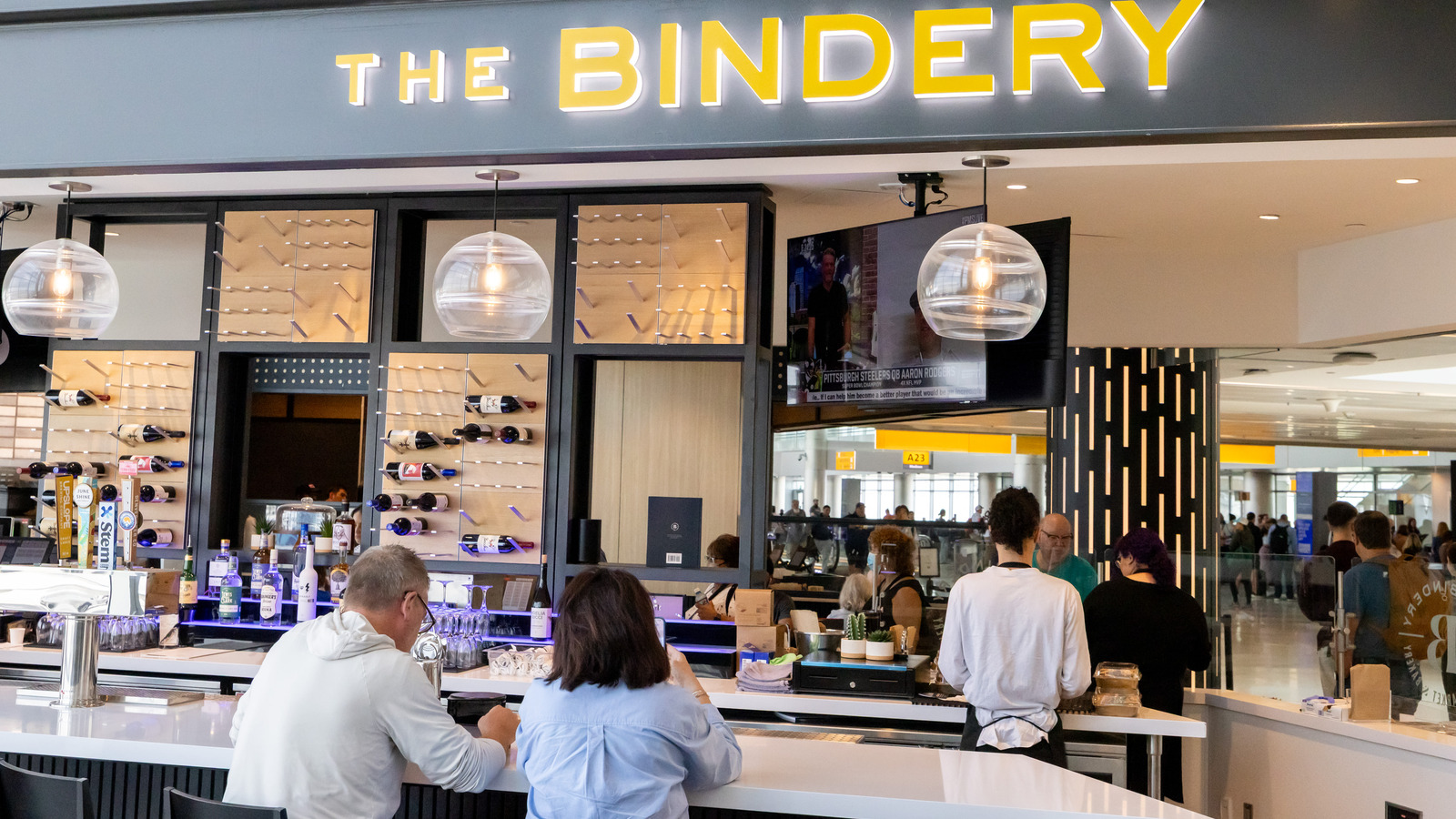 At Denver International Airport’s Marketplace Concourse A near gate A38, five MOZCC100 Series round column covers were installed at the entrances near Tocabe, The Bagel Deli, D Bar, and the Williams & Graham restaurants. Each column cover measures 36 inches in diameter and 8 feet 6 inches tall, fabricated in three sections of .125″ aluminum with vertical butt joints and a 6-inch recessed base in #4 stainless steel. The design features Moz’s Twinkle laser-cut pattern and a Snow powder-coated interior finish, offering a clean, modern look that enhances the terminal’s architecture.