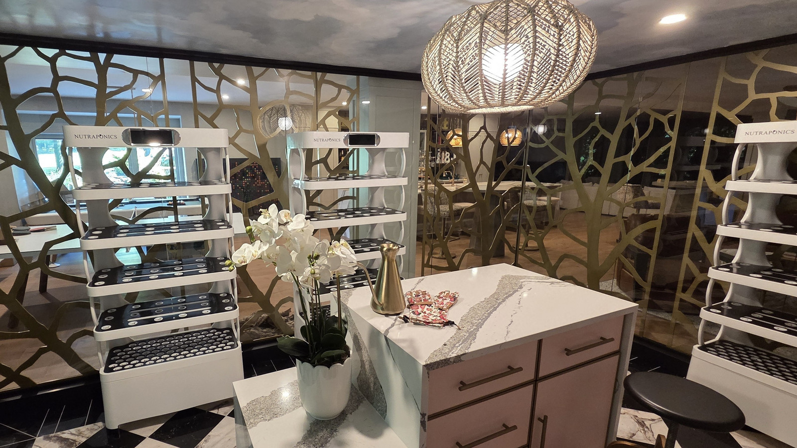 The Luxe Greenhouse is a 293-square-foot working greenhouse that reimagines traditional greenhouse architecture by relocating it from the backyard to the heart of the home within a residence’s finished lower level. Designed by Laura Yeager Smith Home & Design, the space blends year-round cultivation with a refined residential aesthetic, creating a biophilic “jewel box” that serves as both a functional growing environment and a striking design feature within the home.